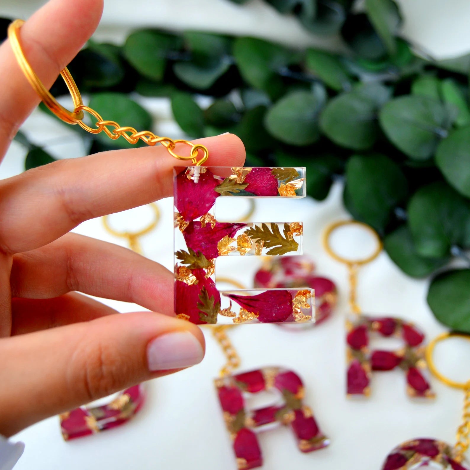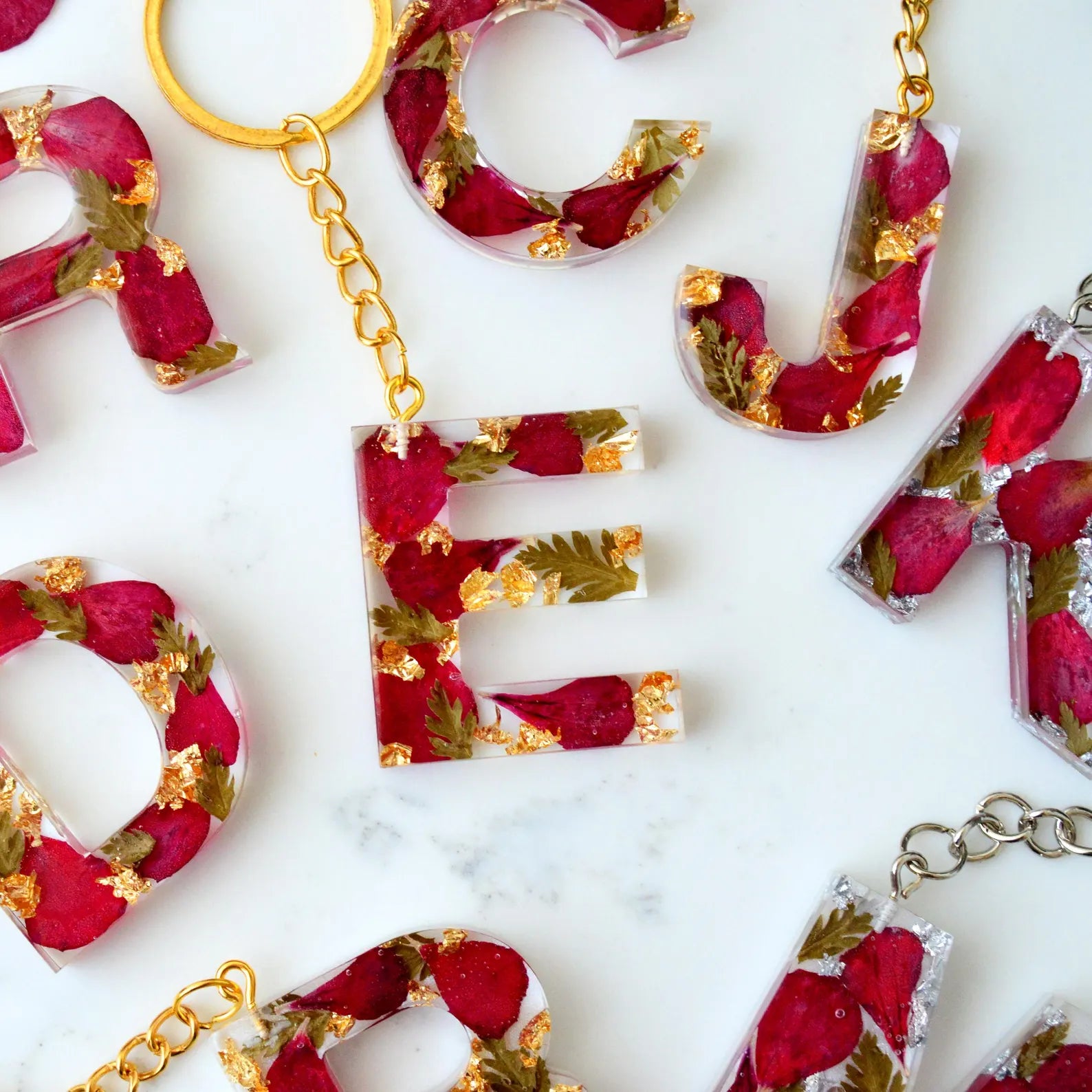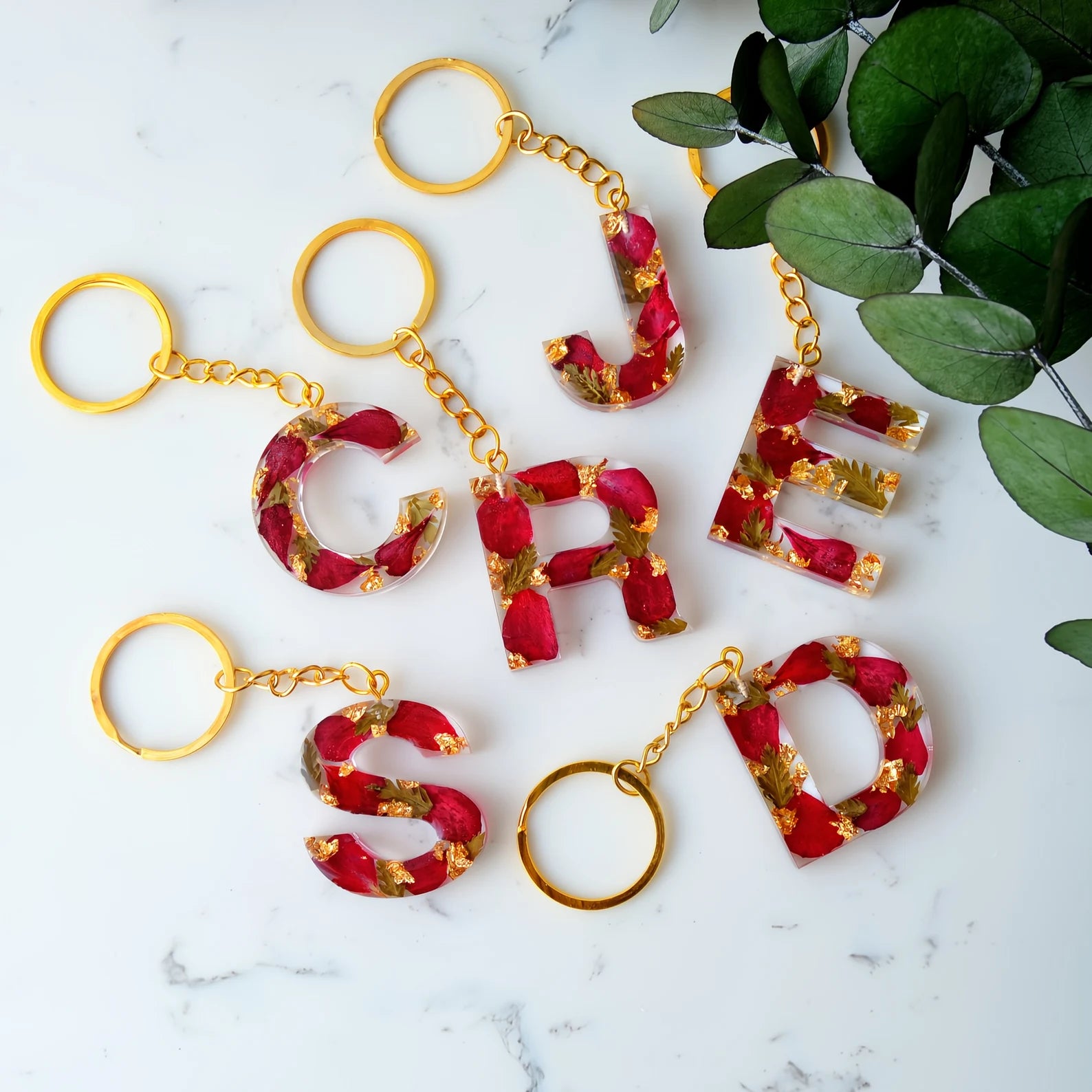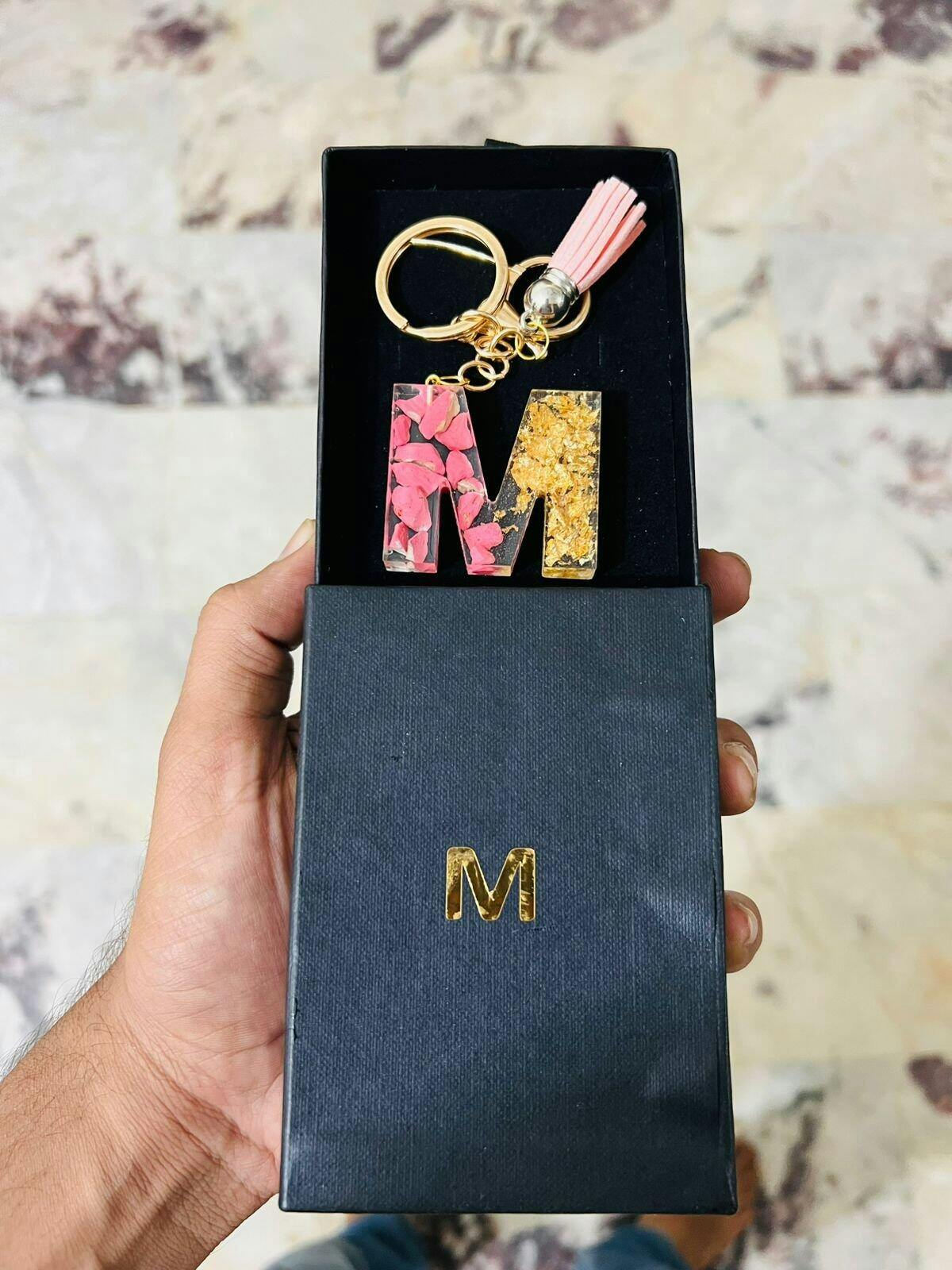 Personalized Flower Resin Keyring | Custom Initial | Epoxy Keychain | Name Key Fob | Gift for Her