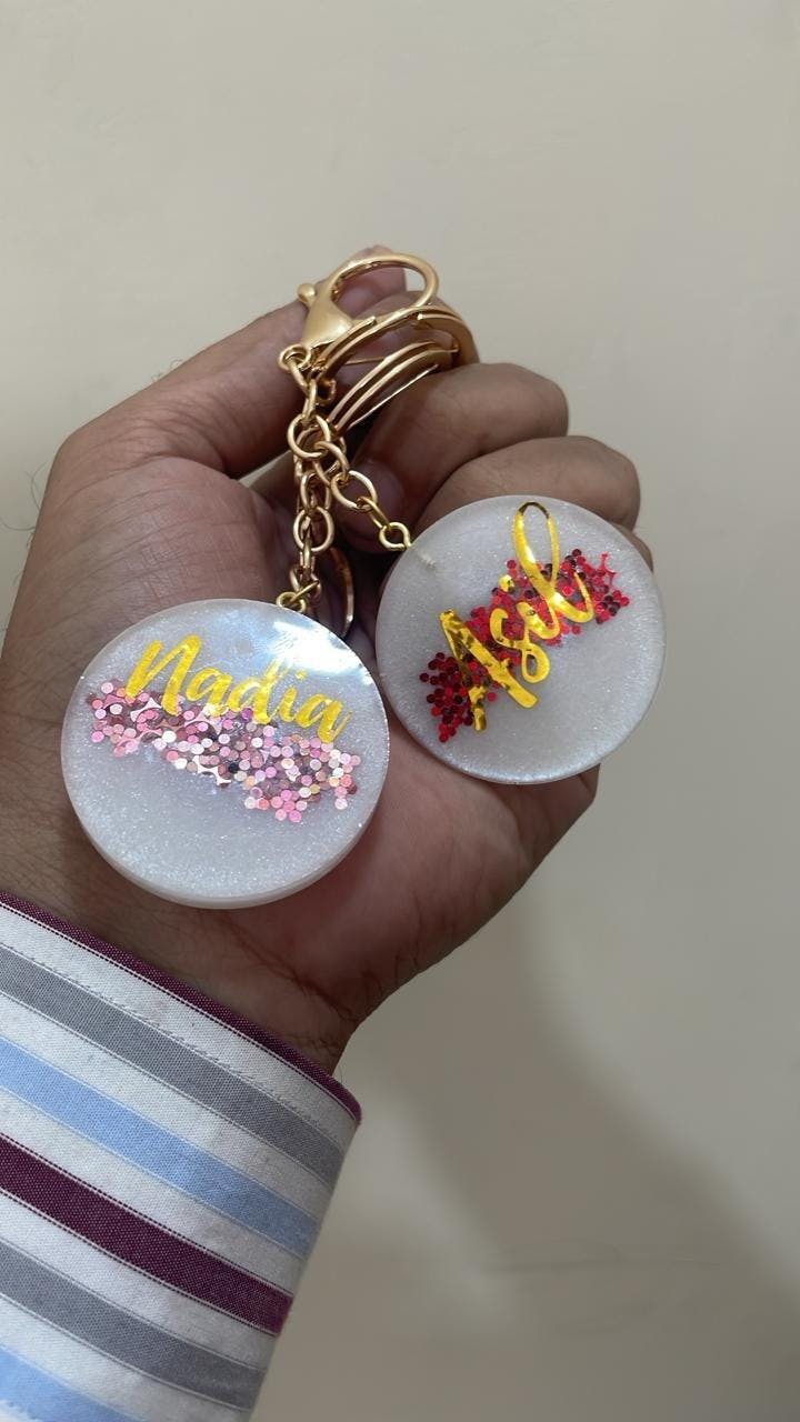 Resin Keychain with Chunky Glitter – Personalized Name Charm Size 1.5 inches-Best Gift for you Love