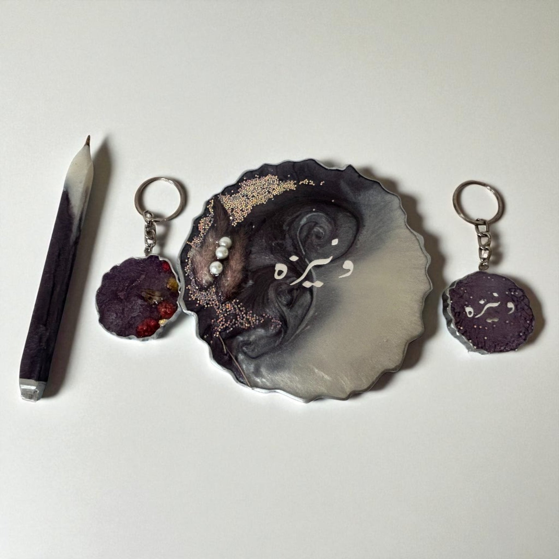 Custom Name Resin Gift Set – Coaster, Keychains & Pen,Resin Personalised Coaster & Keychain ,